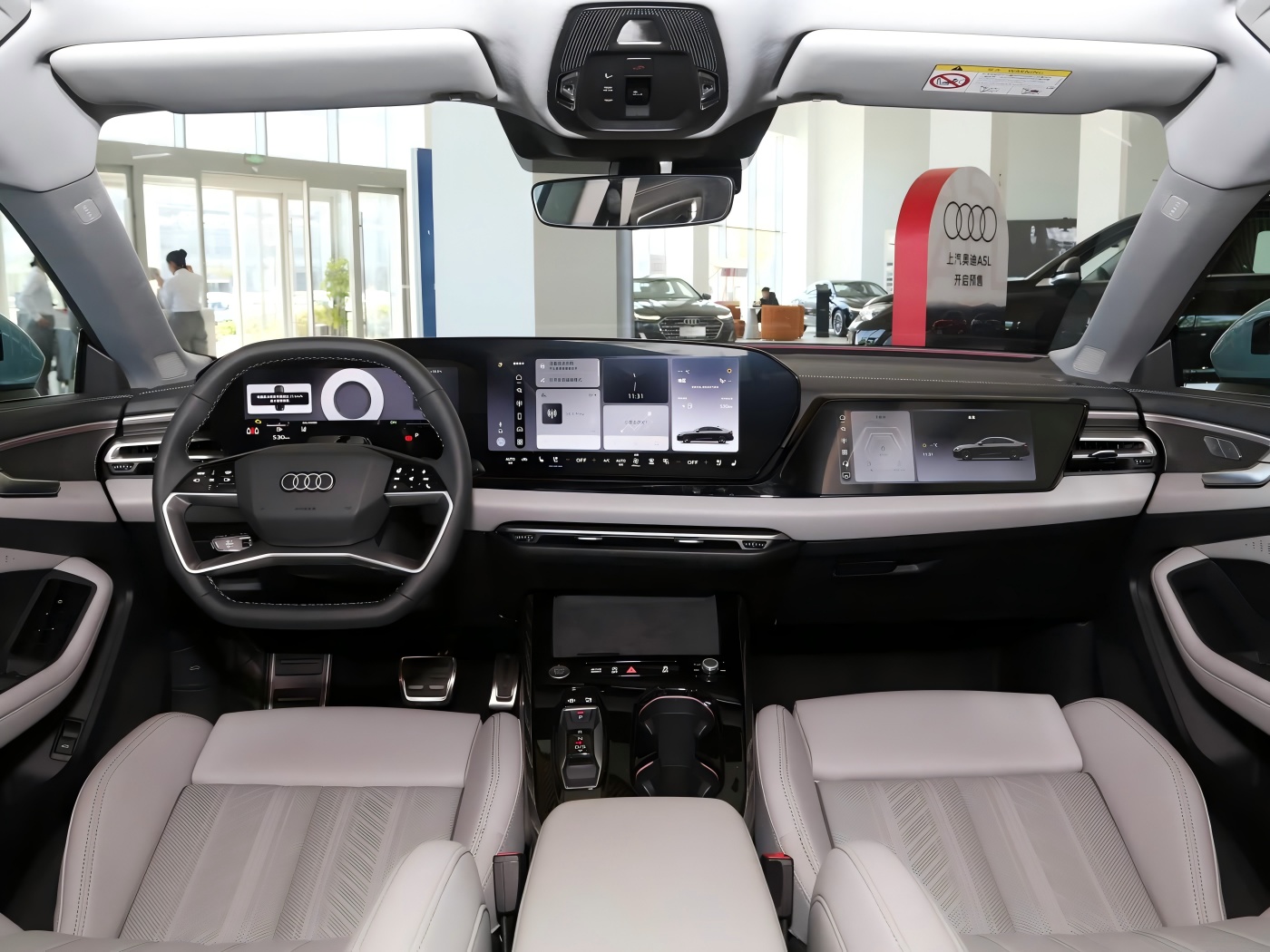 Intus, in vehiculo iactat triplici-screen setup constans de pleno LCD vas botrum portassent, centralis Touchscreen et viatoribus-latus entertainment ostentationem. Tech Tech Tech Tech Technatu dynamic et Tech-savers vultu gignit a dynamic et tech vultus, complementum per audi scriptor tardus quattuor-locutus plana-deorsum gubernaculo rota. Physica Bullae et Knobs sunt retinuit ad fundum centrum consolari ad facile aditus ad frequenter usus functiones. Praeterea, novum currus et adopt aduersus Huawei est provectus intelligentes incessus solution, featuring duo lentars, XI summus definitio cameras, sex millimeter-unda radarsi, et XII ultrasonic sensoriis, promissum est excitando driving experientia.